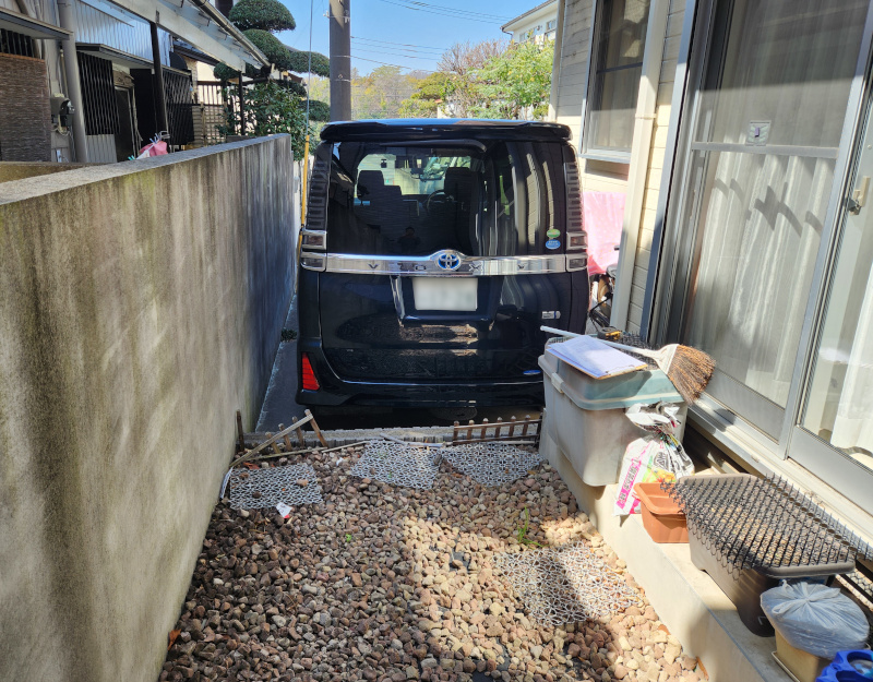 砂利の庭を使いやすくしたい、雑草も生えるしなんとか改善したいというご要望を承りました
