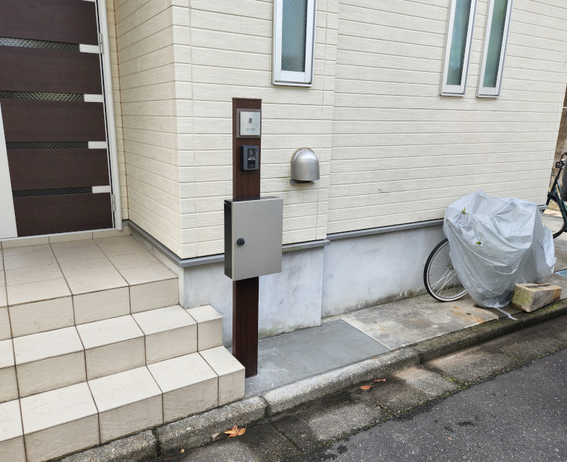 自転車を道路沿いに2台停めたいという要望で門柱をスマートなものに取り換えました